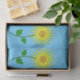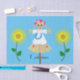 Cute Blonde Pigtails Scarecrow with big sunflowers, to personalise by changing to your name on any background colour
