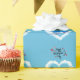This cute Valentine's Day Wrapping Paper features an illustration of a blue and white cartoon aeroplane with propellers. The aeroplane is flying through a heart shaped cloud and has a big smile and excited expression. Perfect for all ages!