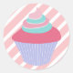 Cute Blue and Pink Cupcake with Stripes Classic Round Sticker