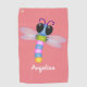 Cute blue and pink dragonfly cartoon illustration golf towel