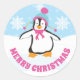 Cute Blue and Pink Hat Christmas Penguin Classic Round Sticker