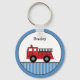 Cute Blue and Red Fire Truck Personalised Keychain.