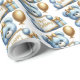 Cute blue baby bear with gold balloon happy b-day wrapping paper
