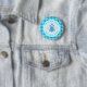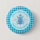 This button features a graphic image of a cute blue baby boy bee with black legs and beady eyes. He has a pale blue fuzzy body with bright blue stripes and cute blue antennae on his fuzzy head. His delicate little wings have a pale blue mottled pattern on them.