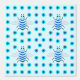 This awesome nursery wallpaper features a graphic image of a cute blue baby boy bee with black legs and beady eyes. He has a pale blue fuzzy body with bright blue stripes and cute blue antennae on his fuzzy head. His delicate little wings have a pale blue mottled pattern on them.