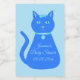 This awesome sheet of Baby Shower mini wine bottle labels features a digital art image of a cute blue cat with a curly tail. His eyes are pale blue with black pupils. He is wearing a pink bow in his hair and a shining blue collar round his neck with a blue token on it.