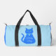 This awesome diaper bag bag features a digital art image of a cute blue cat with a curly tail. His eyes are pale blue with black pupils. He is wearing a pink bow in his hair and a shining blue collar round his neck with a blue token on it.