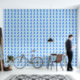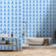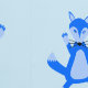 This awesome nursery wallpaper features a digital art image of a cute blue Baby Boy Fox with a black nose and whiskers, bright blue bushy tail and belly and even blue fingers and toes. A cute design for celebrating a baby boy.
