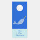 This awesome nursery door hanger features a digital art image of a cute magical blue baby boy Narwhal. The main body of the Narwhal has a rough texture and is blue while the belly is a grey blue colour. The Narwhal has a black eye with a white pupil and a shiny gold horn on its face. It also has delicate tail and flippers. There is custom text on the front and back so you can turn it round to let everyone know if baby is sleeping or awake.