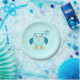 This awesome paper party plate features a cute cartoon of a blue owl with sleepy eyes, a wide-open beak and cute fluffy feathers. The owl is holding a powder blue balloon. There is pale blue text inside the balloon that says, “Baby boy”. This is the perfect gift for celebrating a newborn baby boy.