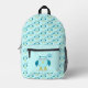 This awesome backpack features a cute cartoon of a blue owl with sleepy eyes, a wide-open beak and cute fluffy feathers. The owl is holding a powder blue balloon. There is pale blue text inside the balloon that says, “Baby boy”. This is the perfect gift for celebrating a baby boy.