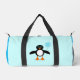 This awesome diaper bag features a cute cartoon of a blue penguin with blue eyes, a little orange beak and a white tummy. The penguin is holding a powder blue balloon. There is pale blue text inside the balloon that says, “Baby boy”. This is the perfect gift for celebrating a baby boy.
