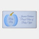 This awesome desk mat features a digital art image of a cute blue pumpkin with 3 different shades of blue getting darker towards the edges of the pumpkin. There is a green stalk attached to the top. A perfect design for celebrating a baby boy, especially at Thanksgiving. There is custom text so you can include a message and the gender of the baby.