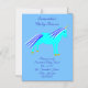 This awesome magnetic party invitation features a digital art image of a cute magical blue baby boy unicorn. The main body of the unicorn is blue and the mane and tail are two different shades of blue. The unicorn has golden hooves and a bright shiny gold horn on top of its head. It has a blue diamond shaped eye. The unicorn has a big smile on its face. There is custom text so you can include all the Baby Shower details.