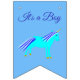 This awesome bunting features a digital art image of a cute magical blue baby boy unicorn. The main body of the unicorn is blue and the mane and tail are two different shades of blue. The unicorn has golden hooves and a bright shiny gold horn on top of its head. It has a blue diamond shaped eye. The unicorn has a big smile on its face. There is custom text so you can reveal the gender of the baby and include the name of the Mother-to-Be.
