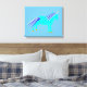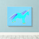 This awesome canvas print would make a lovely print for the wall of a nursery room. The design features a digital art image of a cute magical blue baby boy unicorn. The main body of the unicorn is blue and the mane and tail are two different shades of blue. The unicorn has golden hooves and a bright shiny gold horn on top of its head. It has a blue diamond shaped eye. The unicorn has a big smile on its face.