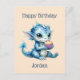 Cute Blue Baby Dragon Eating a Cupcake Postcard