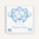 Cute blue balloons. Illustration in shades of blue on a white background. Guest Book for wishes for baby perfect for a baby shower if you're expecting a boy. On the back side light blue background.Possibility to personalise all texts.