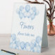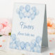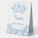 Sweet elegant "favours" table sign , featuring cute blue balloons. Illustration in shades of blue on a white background. Perfect for a baby shower if you're expecting a baby boy.