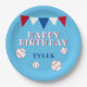 Cute Blue Baseball Ball Flag Kids Birthday Party Paper Plate