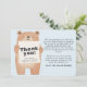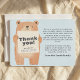 Thank your loved ones in the cutest way with this baby announcement card featuring a charming bear holding a sign that displays “Thank you” along with your baby boy’s name, weight, and size. The back of the card includes a heartfelt thank-you message, perfect for sharing your gratitude for gifts and support. A sweet design with a light blue theme, ideal for celebrating your little cub!
