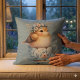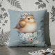 Cute Blue Bird with Floral Crown in Teacup Cushion