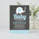 Cute Blue Black Chalkboard Elephant Baby Shower Invitation
