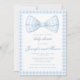 Cute blue bow ribbon gingham baby boy shower invitation