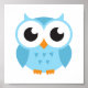 Poster featuring a cute little blue cartoon baby owl. Fun wall art perfect for a little boys or girls room or baby nursery.