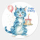 Cute Blue Cat Birthday Cake - Birthday Classic Round Sticker