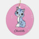 Cute blue cat on pink custom name ceramic tree decoration