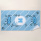 Cute Blue Crab Sea Animals Kids Monogram Beach Towel. Cute and simple cartoon drawings of fun sea animals. Blue background with white stripe pattern. Add your monogram.