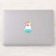 A vinyl decal with a cute blue cupcake with pink frosting and a kawaii smiling face. A cherry on top also has a cute happy face. A shooting star is flying in the air.