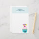 Stationery paper with a cute blue cupcake with pink frosting and a kawaii smiling face. A cherry on top also has a cute happy face. A shooting star is flying in the air. The top has a stylish polka dot border with your personalised name.