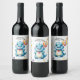 Cute Blue Dinosaur Balloon Boy birthday party Wine Label