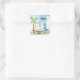 Cute Blue Dinosaur Palm Tree 1st Birthday Square Sticker