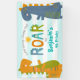“Let’s stomp, chomp and roar”. Proudly welcome every guest of your son’s dinosaur birthday party! Display this stunning, modern, stylish, personalised banner to add to his special day. A fun, whimsical, playful visual of two cute, bold, kawaii, orange, green and blue blue t-rexs, and fun, handwritten typography over a light turquoise blue and white striped background, announces your son’s birthday party. Customise with his name, birthday year, or other copy. This charming banner is guaranteed to set just the right tone for your event! Matching and coordinating invites, plates, napkins, stickers, thank you notes and other birthday goodies are also available in this special and fun collection.