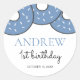 Cute Blue Doughnut Boy First 1st Birthday Classic Round Sticker