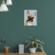 Pop art french bulldog poster featuring a cute red fawn frenchie on a pastel blue background that can be changed to any colour.