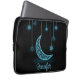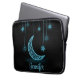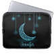 This cute laptop sleeve features a classic black background with a pretty blue glowing moon and stars hanging by strings. Personalise with your first name for a specially customised gift idea. Perfect for college kids or back to school.