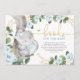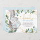 Adorable jungle-themed books for baby card featuring a sweet baby elephant, chic blue roses and elegant watercolor greenery in green and gold. Matching items available in our store!