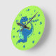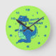Cute Blue Green Dinosaur Hello Name Kids Round Clock