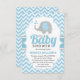 Cute Blue Grey White Modern Elephant Boy Baby Shower Invitation | Chevron Baby Shower Invitation