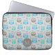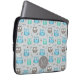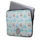Cute Blue Grey Owl Pattern Monogram Laptop Sleeve