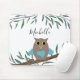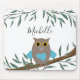 Cute Blue Heart Owl Branch Leaves Name Mouse Mat