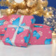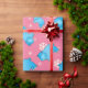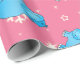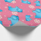 Cute blue hippo christmas pink snowflakes wrapping paper