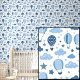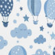 Cute Blue Hot Air Balloons Stars & Clouds on White Wallpaper