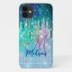Cute blue iridescent unicorn faux glitter monogram Case-Mate iPhone case