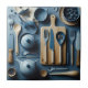Cute Blue Kitchen Utensils Aesthetic Wallpaper Tile