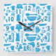 Cute Blue Kitchenware Cooking Tools Pattern Art Square Wall Clock